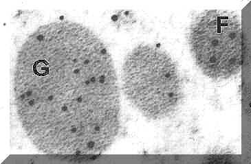 The second hypothesis states that GH antigens are binding to GH receptors in gonadotropes. This would point to GH as a regulatory molecule for the gonadotropes themselves. The fact that gonadotropes have GH receptors suggests that they may be able to receive such regulation. However, electron microscopic data shown below indicates that the gonadotropin molecules are being translated by somatotropes which supports the first hypothesis.